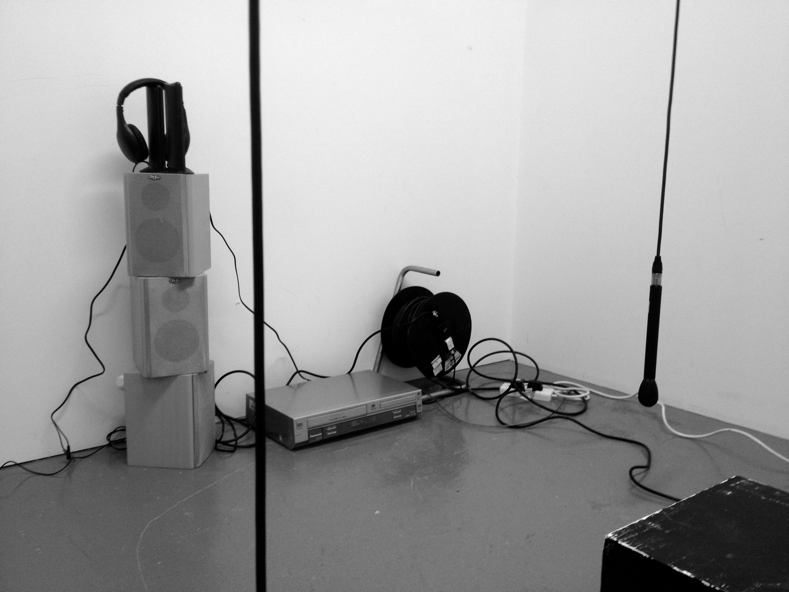 Alluding to the gap between performance and viewing – particularly the theatrical aspects of media engagement. The user opts into an agreement with the media that relies upon their prior knowledge of what it is, and what it is typically used for. By creating an installation space, the viewer is brought within the sphere of creation, and are as active in the production as they are in the consumption of the artwork – something which then calls for a repeated production in the spirit of the regenerative, reproducible media being used.